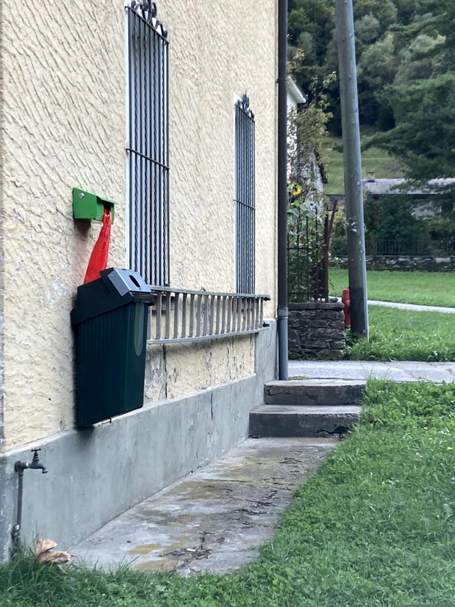 Nel canton Ticino ogni Comune ha stabilito la tassa sul sacco dei rifiuti. Nella casa (vicino alla spazzatura) si trovano 2 sacchi comunali (gratuiti) di 35 litri messi a disposizione da noi per ogni settimana di soggiorno. Qualora la produzione di spazzatura superasse le dimensioni del sacco, l’ospite potrà acquistarne un altro presso l’Antica Osteria Ghiridone. NON possono essere usati sacchi della spazzatura diversi da quelli ufficiali stabiliti dal Comune delle Centovalli. Esiste anche la possibilità di separare i rifiuti. Il centro di raccolta si trova vicino alla Ex casa comunale.