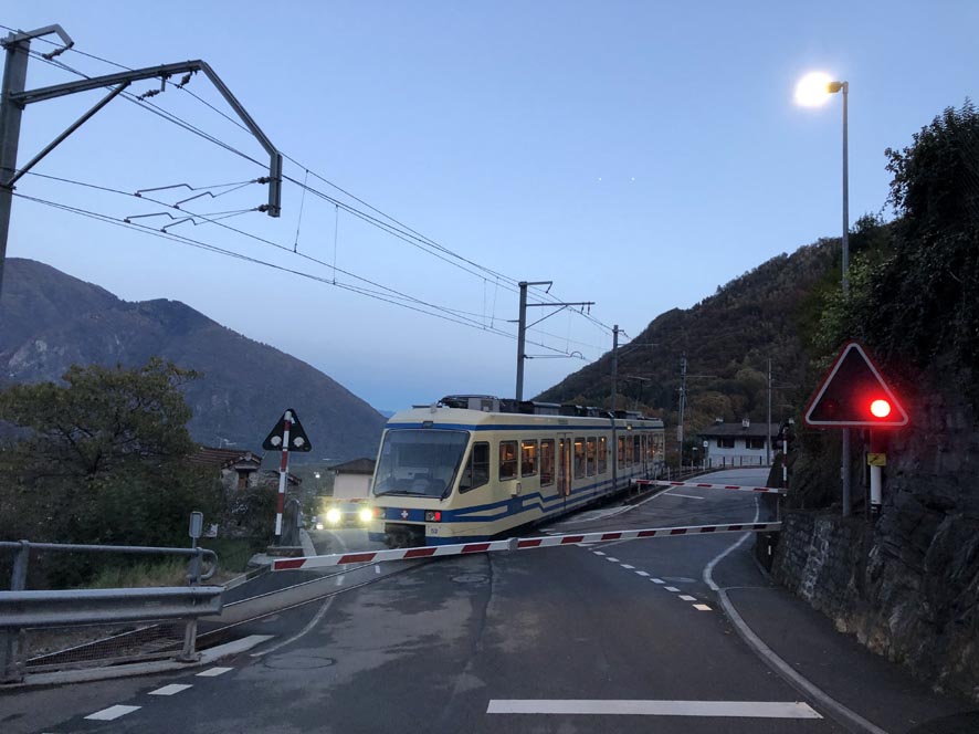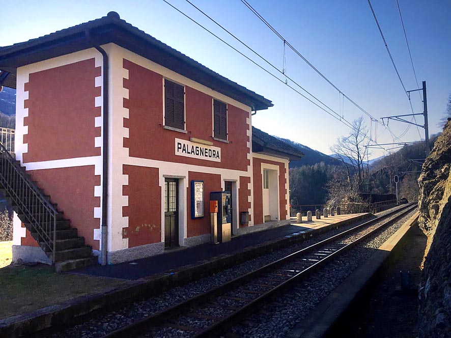 A sette minuti in auto dal centro del paese si trova la stazione di Palagnedra. Bisogna scendere fino alla diga e risalire sull’altro versante. Il treno transfrontaliero prende il nome della valle, chiamandosi Centovallina. Si parte dalla stazione di Locarno e si sale attraverso diverse tappe. Va detto che questa tratta è considerata tra le dieci più belle esperienze di viaggio di tutta Europa grazie al centenario treno del foliage. (Orari e biglietti, anche tramite il portale delle FFS).