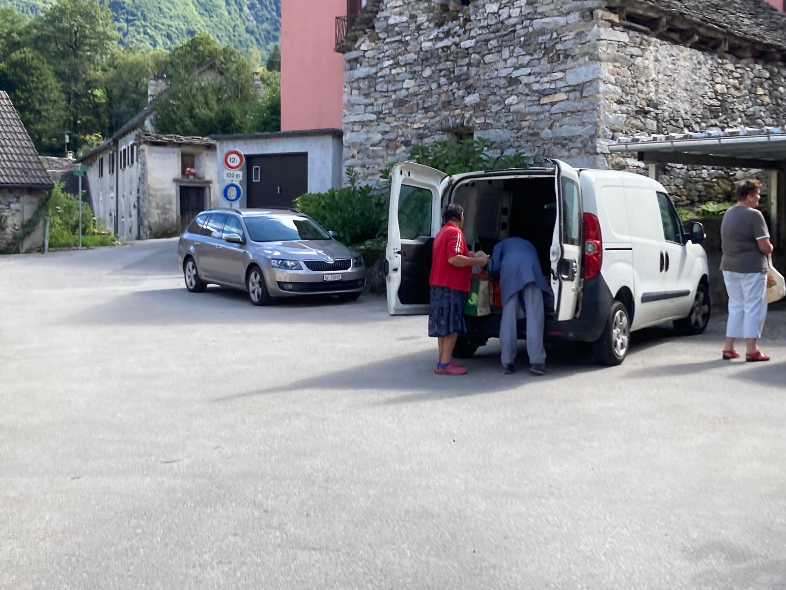 Da decine di anni l’Ercole (Pellanda) porta il pane in paese, e in tutto il resto della valle: i suoi dolci sono buonissimi. Il suo furgone, a volte bianco a volte arancione, arriva in piazza, suonando il clacson, tra le 12:00 e le 13:00, traffico permettendo, tutti i lunedì, i mercoledì e i venerdì. D’estate anche il sabato.