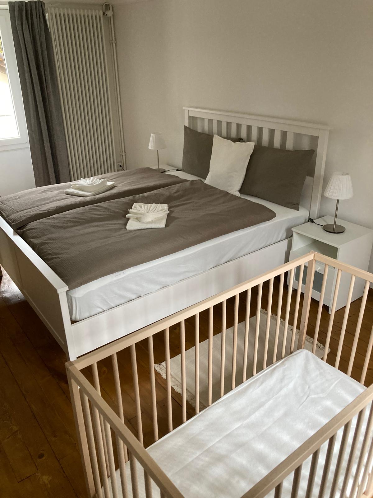 (Bei Anreise mit Kleinkindern bitten wir Sie, ein Kinderbett bzw. eine Babywiege anzufordern.)